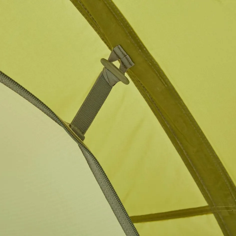 Du kannst das Innenzelt in einem Arbeitsgang mit dem Außenzelt aufstellen. Das spart Zeit, ist auch im Dunkeln einfacher und besonders praktisch bei Regen. Das Zelt kannst du immer wetterabgewandt über einen der drei Eingänge verlassen. Du kannst die Eingänge auch zur besseren Belüftung bei warmen Temperaturen offen stehen lassen. Den großen seitlichen Eingang kannst du nicht nur komplett schließen, sondern auch nur mit einem Moskitonetz verdecken. Das hält dir unliebsame Plagegeister vom Hals hält, während du in der Apsis sitzt.
