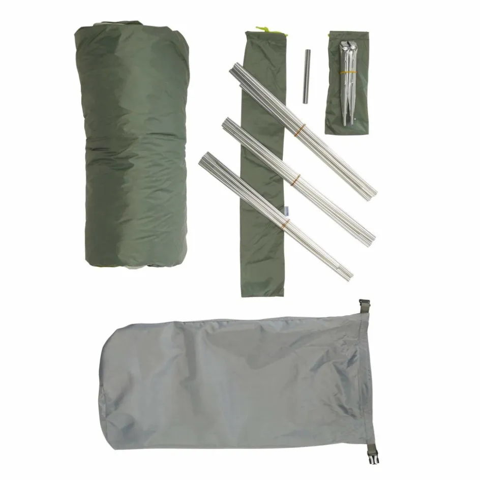 Alaska 3.235, Gestänge, Heringe, Reparaturhülse, 8 Abspannleinen, Packbeutel