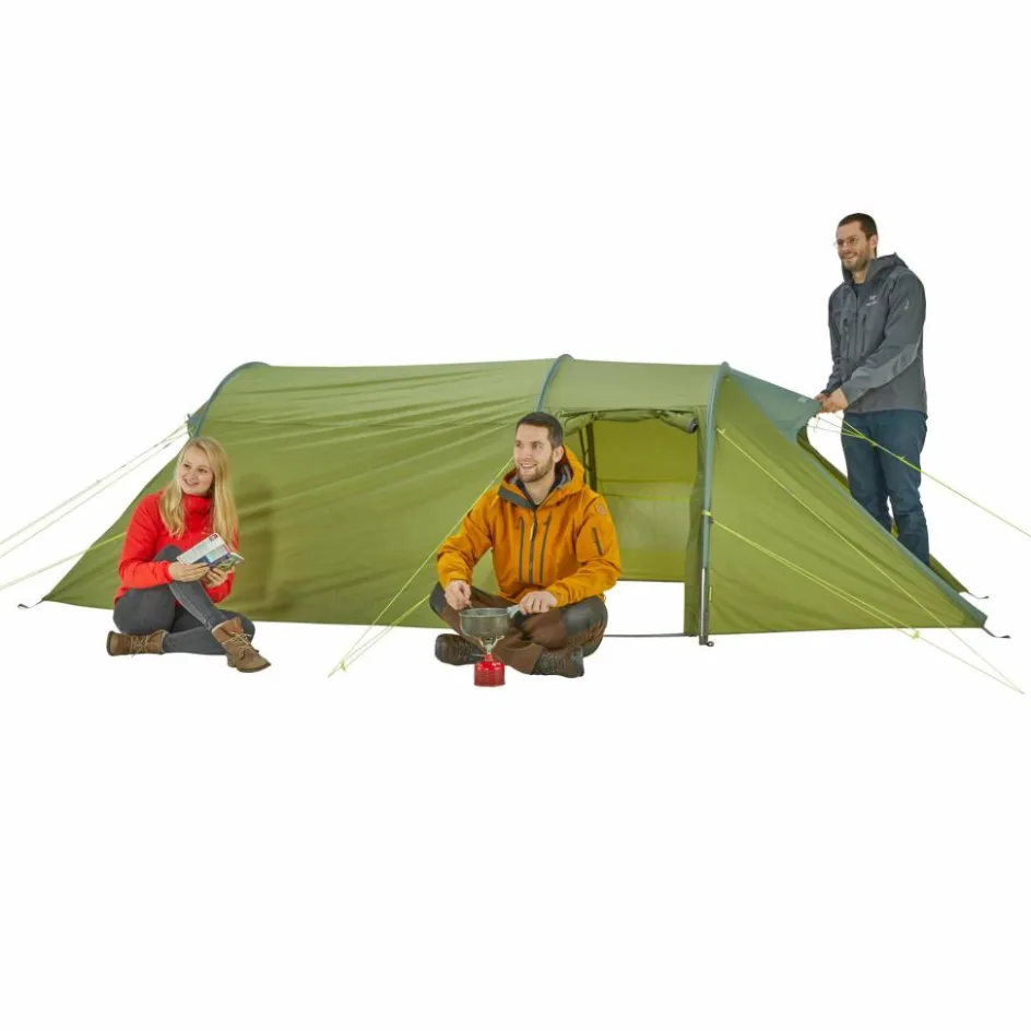 Tunnelzelt mit langer Liegefläche für große Menschen. In der Apsis ist viel Platz für diverse Taschen und andere Ausrüstung. Praktische Features sorgen für ein unbeschwertes Camperleben.