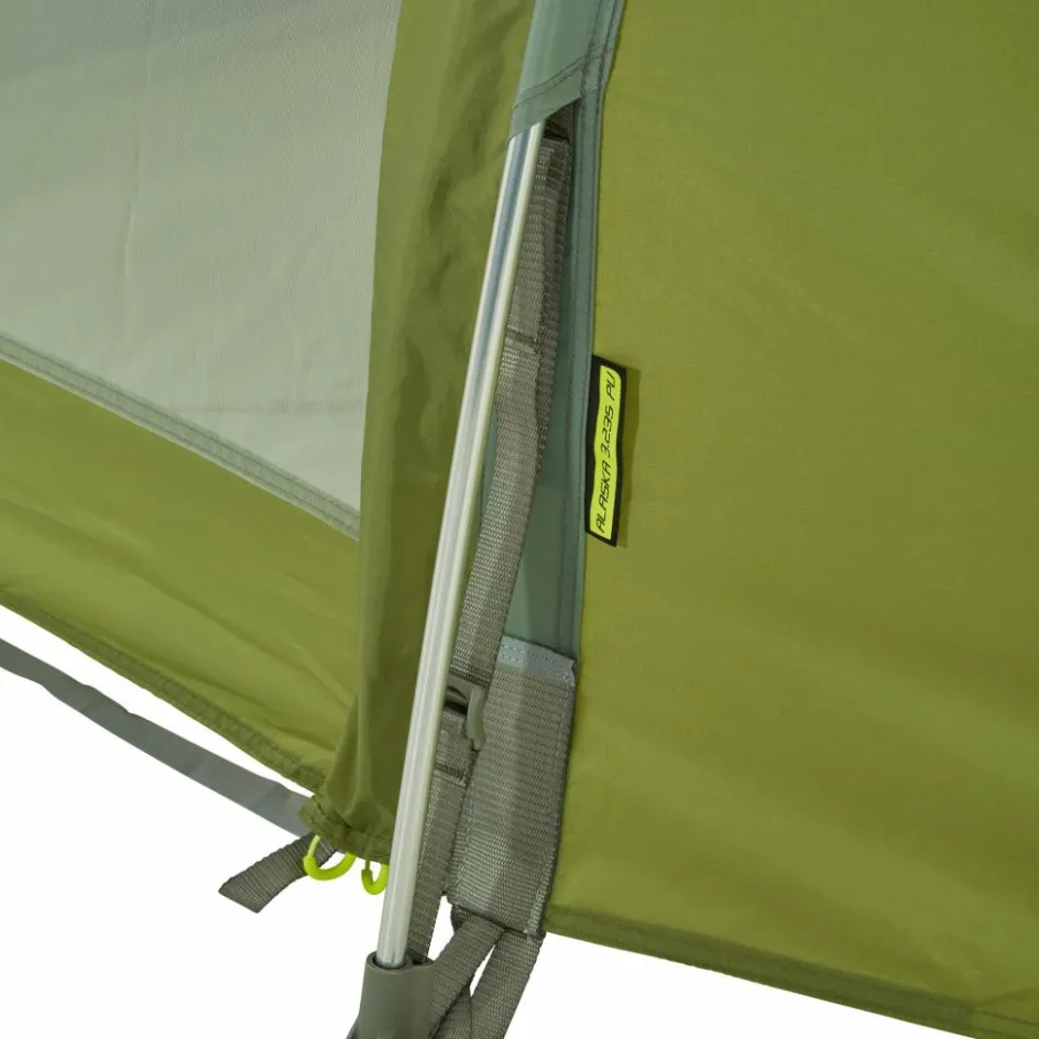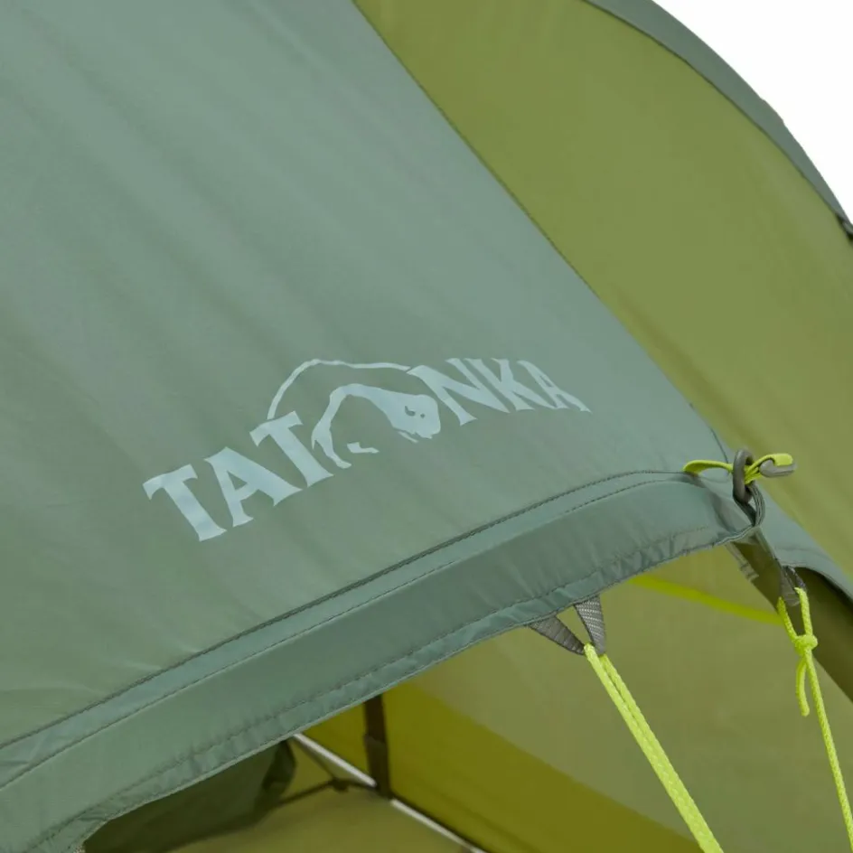 Das Innenzelt hat eine lange Liegefläche von 235 cm und bietet damit auch Menschen mit großer Körperlänge ausreichend Platz. Auch stößt du so nicht mit dem Fußbereich des Schlafsacks an das Außenzelt. Das Alaska unterscheidet sich von Tatonkas Arctis durch die deutlich längere Apsis und den zusätzlichen, seitlichen Eingang. Das Resultat ist mehr Platz für Ausrüstung und zum Sitzen in der Apsis.