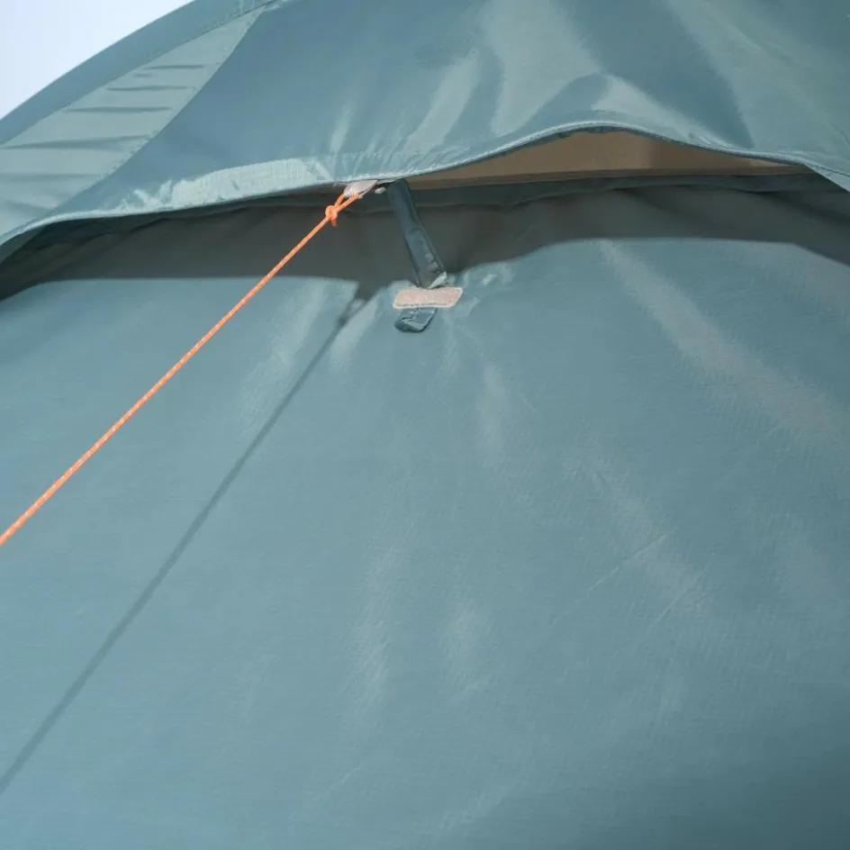 Praktische Details heben das Zelt von anderen Modellen ab, dazu gehören die optimierten Belüftungsoptionen. So kannst du in trockenen und warmen Nächten die Rückseite bis zum ersten Gestängebogen aufrollen. Alternativ nutzt du die beiden großen, abdeckbaren Fenster in der Apsis, um für reichlich Frischluft zu sorgen.