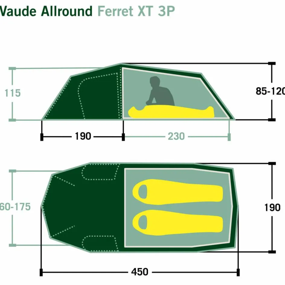 Drei Eingänge, eine großzügige Apside und ein komfortabler Eingangsbereich bieten Flexibilität und Schutz bei jedem Wetter. Hervorragende Belüftung wird durch Belüftungshutzen und eine Ventilationsöffnung im hinteren Bereich gewährleistet. Das eingehängte Innenzelt ermöglicht einen regensicheren Aufbau.