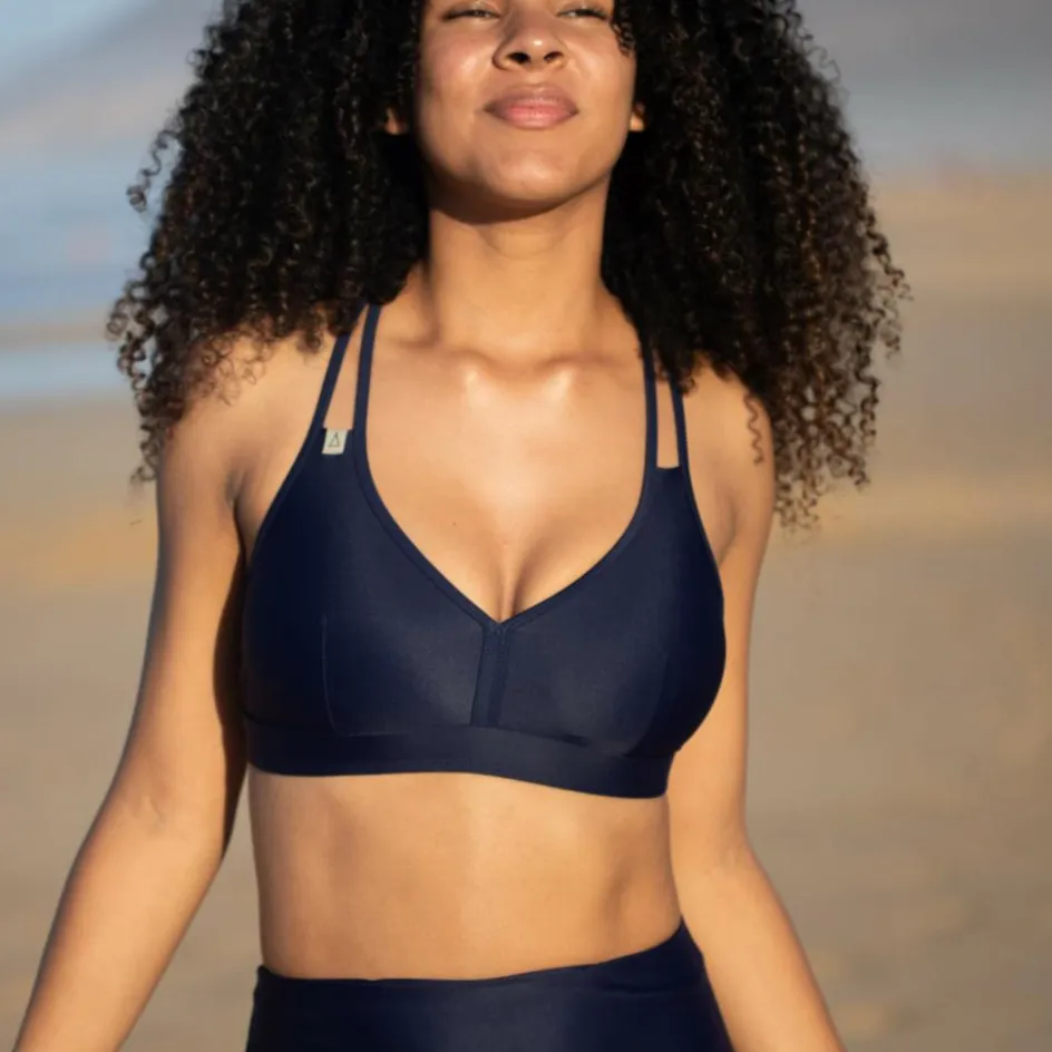 Am Strand und beim Wassersport liegt das Bikini Top Wild Dark Blue ohne Knoten und Verschlüsse angenehm auf der Haut und bietet eine starke Abdeckung auch für größere Cups!