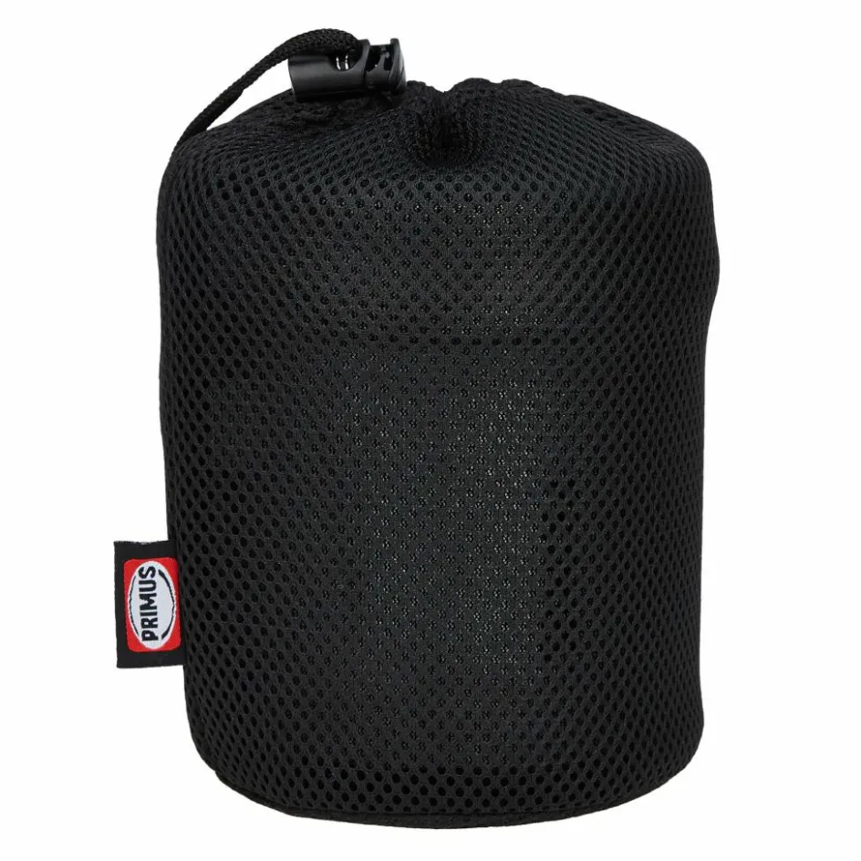 Für den Transport fixierst du die Pfanne mithilfe des Griffs am Topf. In diesem ist ausreichend Platz für eine 230 g Gaskartusche und einen kleinen Gaskocher.