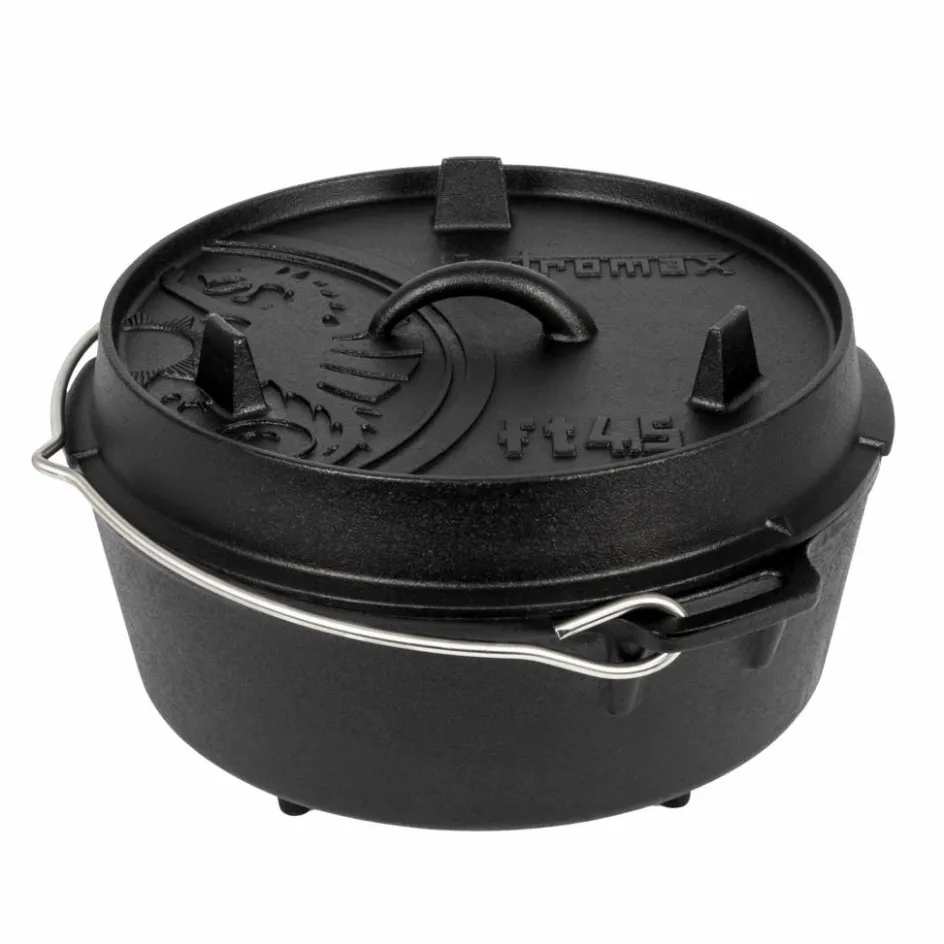 Dutch Oven mit Standfüßen, mit dem du direkt über dem Feuer oder im Ofen leckere Gerichte zaubern kannst. Er eignet sich zum Garen ebenso wie für leckere Eintöpfe, Suppen, Fleisch und Gemüse.