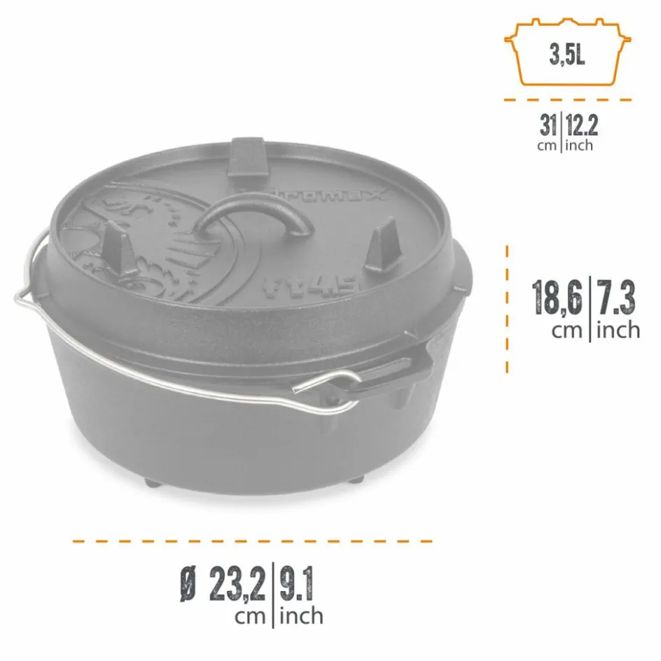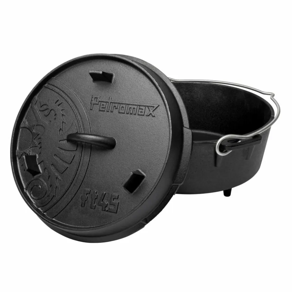 Der Deckel des Feuertopfs kann zudem optional als Servierplatte oder Pfanne genutzt werden. Dank der vorbehandelten Oberfläche (seasoned finished) kannst du den robusten Petromax Feuertopf aus Gusseisen sofort einsetzen.