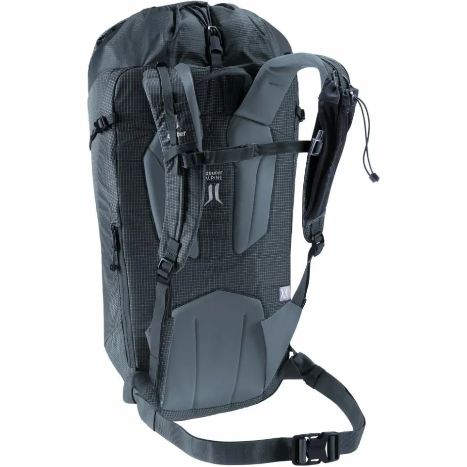 Der schmale Hüftgurt, das abnehmbare Helmnetz, die praktischen Befestigungsschlaufen, die beidseitige Pickelhalterung und Seilfixierung sorgen nicht nur für ein herausragendes Verhältnis von Tragekomfort zu Gewicht, sondern ermöglichen auch das Tragen eines Klettergurtes und bieten damit funktionale Flexibilität im Einsatz des Rucksacks.