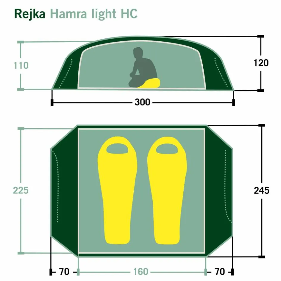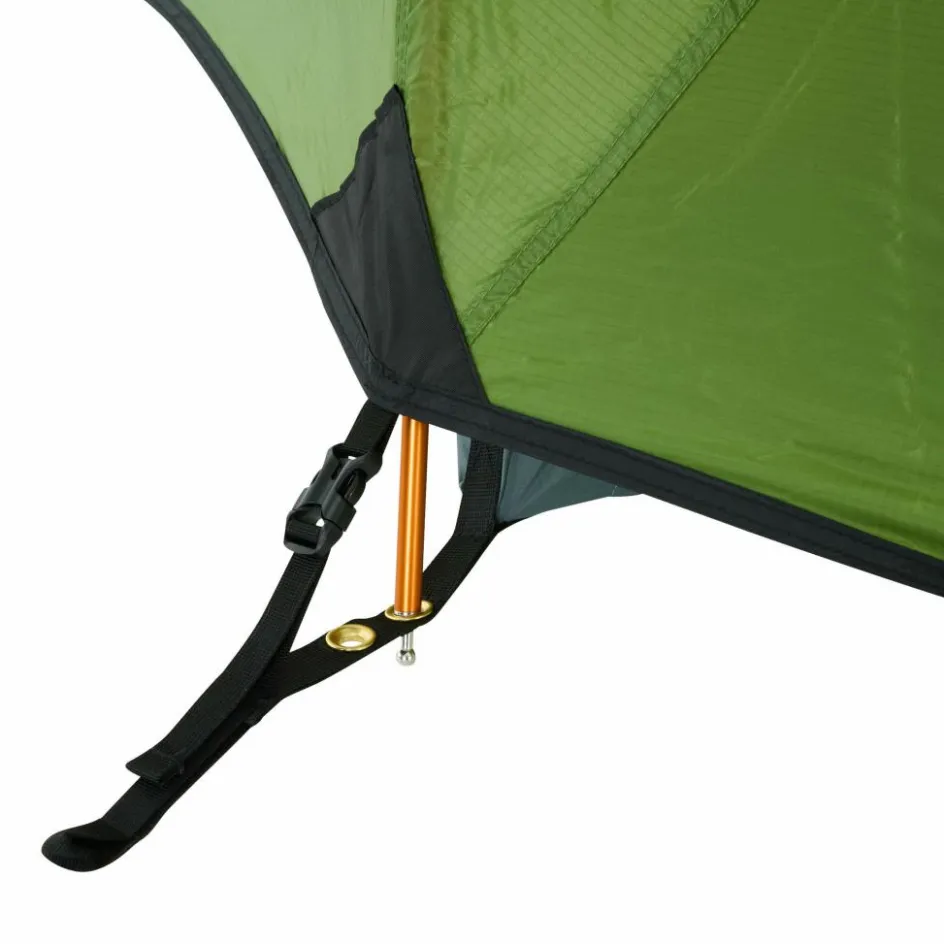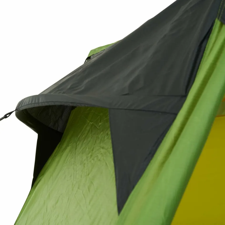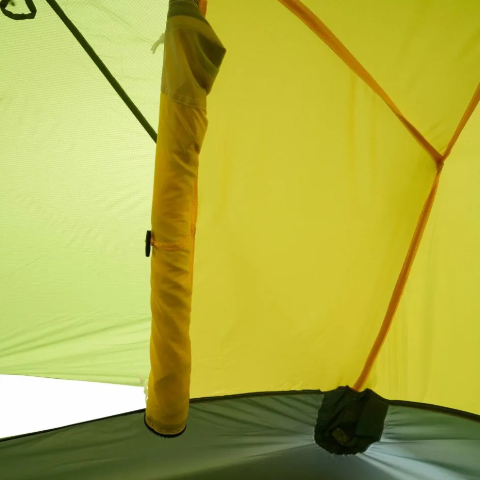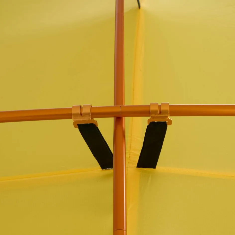 Bist du unterwegs und es herrscht schlechtes Wetter? Oder möchtest du einfach einen Tag an einem schönen Ort verbringen, ohne dabei in einem Zelt eingeengt zu sein? Dann ist das Hamra Light in der HC-Version genau das Richtige für dich. Durch das Gestänge mit hoch angesetzten Kreuzpunkten wird der Fuß- und Kopfbereich weit aufgespannt, was zu steilen Seitenwänden führt. In dieser Version kommen zwei zusätzliche Querbögen im Kuppelbereich zum Einsatz, die das Innenzelt weiter aufspannen und erheblich mehr Platz im Kopfbereich schaffen. So bietet das Innenzelt mehr Bewegungsfreiheit als andere Modelle. Für eine ausreichende Belüftung sorgen zwei große Hochlüfter an den Querseiten sowie zwei kleinere Lüfter an den Apsiden. Die Türen des Innenzelts bestehen aus großflächigem Mesh-Material, die bei Bedarf teilweise oder vollständig abgedeckt werden können.