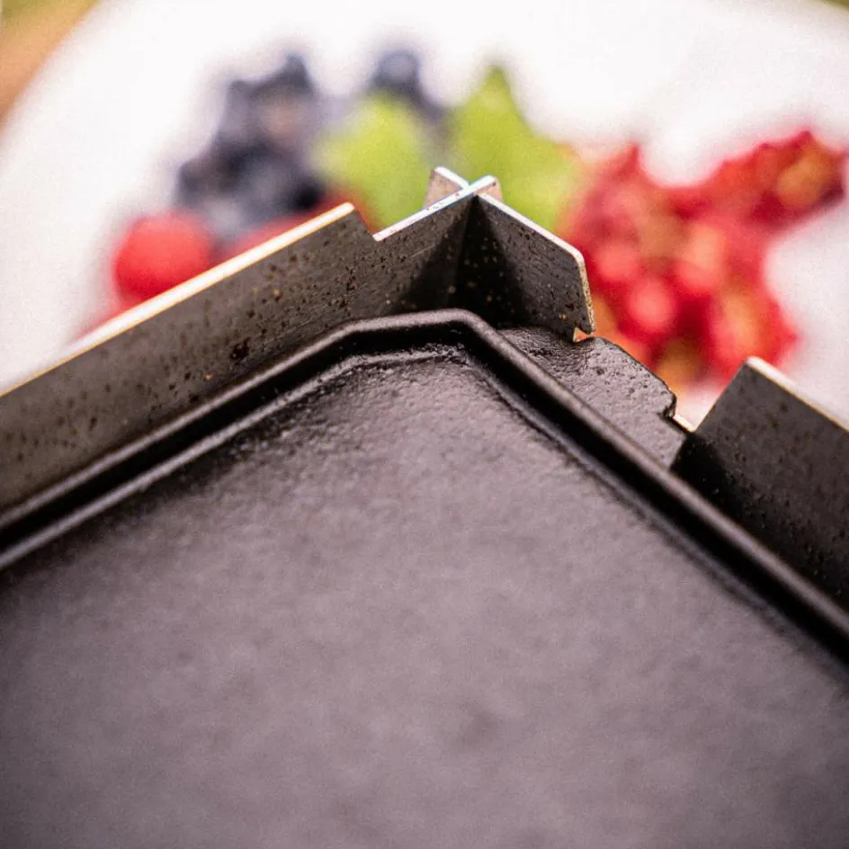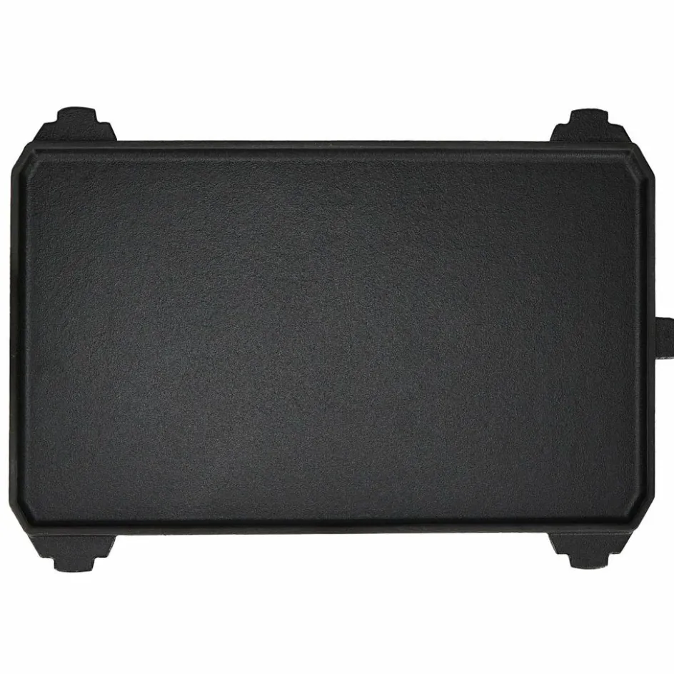 Die doppelseitige Plancha aus Gusseisen speichert sehr viel Hitze und eignet sich zum Zubereiten von saftigen Steaks, Fisch und Gemüse.