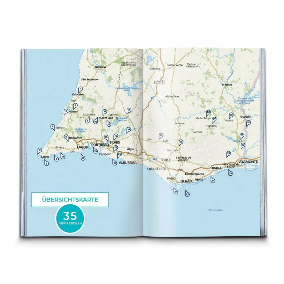 Besser vorher schon wissen, was es zu sehen gibt: Alle 35 Natur- und Wanderhighlights findest du im kompakten Reiseführer Inspiration Algarve. Wasserfälle, einsame Buchten, atemberaubende Aussichten oder einmalige Bergdörfer. Wer will solche Geheim-Tipps nicht schon vor der Reise erfahren? Perfekt für die Urlaubsplanung. So bekommt man schnell einen Überblick, wie man das Beste aus dem Urlaub oder Kurzurlaub macht. Dabei liegt der Fokus voll auf der Natur und einem Aktiv-Urlaub. Vorgestellt werden alle Ziele mit der dazu passenden Wandertour. Eingezeichnet in einer Karte, kompakt beschrieben und mit einem Foto ausgestattet bekommst du schnell einen schönen Eindruck was dich erwartet.