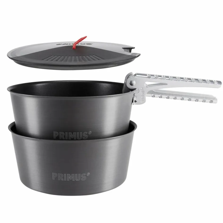 Das LiTech Topfset besteht aus zwei 1,3 l großen Töpfen aus hartanodisiertem Aluminium, einer Griffzange und Deckel. Die Töpfe kannst du ineinanderstapeln, wodurch sie wenig Platz wegnehmen.