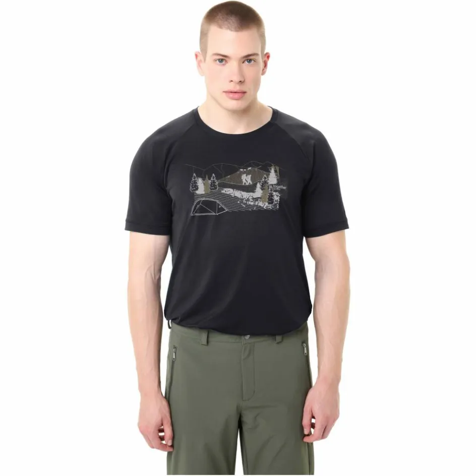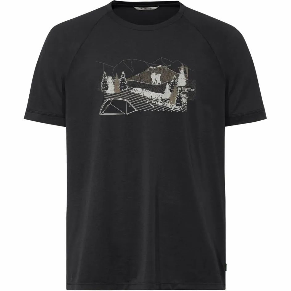 Der Rundhalsausschnitt und ein Brustdruck sorgen für einen modernen Look. Auch in Sachen Nachhaltigkeit hat das Herren T-Shirt einiges zu bieten. Zum einen wurde es so geschnitten, dass möglichst wenig Material verbraucht wird. Zum anderen besteht überwiegend aus recycelten PET-Flaschen. Das Vaude Green Shape-Label steht für ein umweltfreundliches, funktionelles Produkt aus nachhaltigen und bluesign-zertifizierten Materialien.