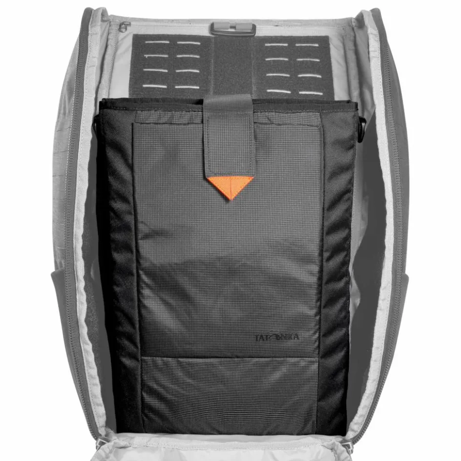 Diese gepolsterte Laptophülle eignet sich für 15-Zoll-Laptops. Auf der Front befindet sich außerdem ein Einschubfach für ein kleines Tablet. Die Hülle kann in jedem Rucksack passender Größe verwendet werden. Im Tatonka-Rucksack EDC Pack 30 BC kann sie auch eingeklettet werden, da sie eine abgedeckte Klettfläche auf der Rückseite besitzt.