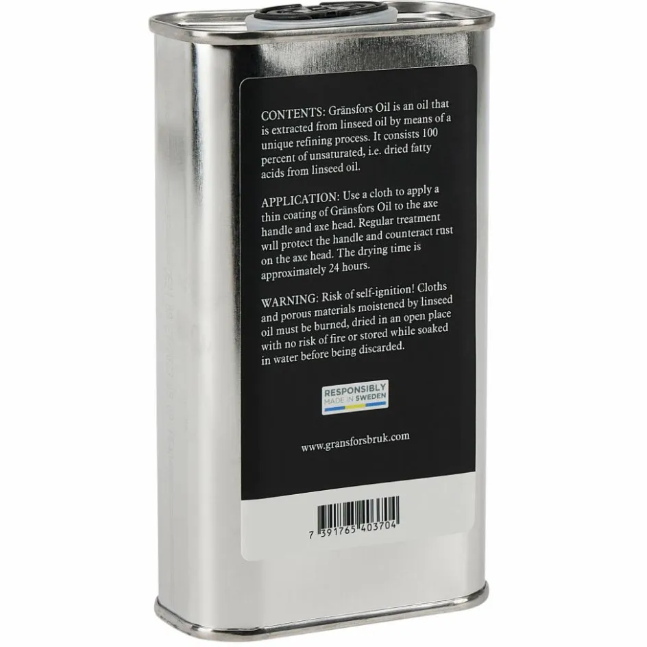 Das Öl ist ideal für die Pflege von Axtköpfen, zum Schutz von Klingen aus Carbonstahl und Holzteilen wie Axtschäften, Schlitten und Messergriffen. Dafür trägst du das Leinöl dünn auf, lässt es einige Minuten einziehen und wischt es anschließend mit einem Tuch ab.