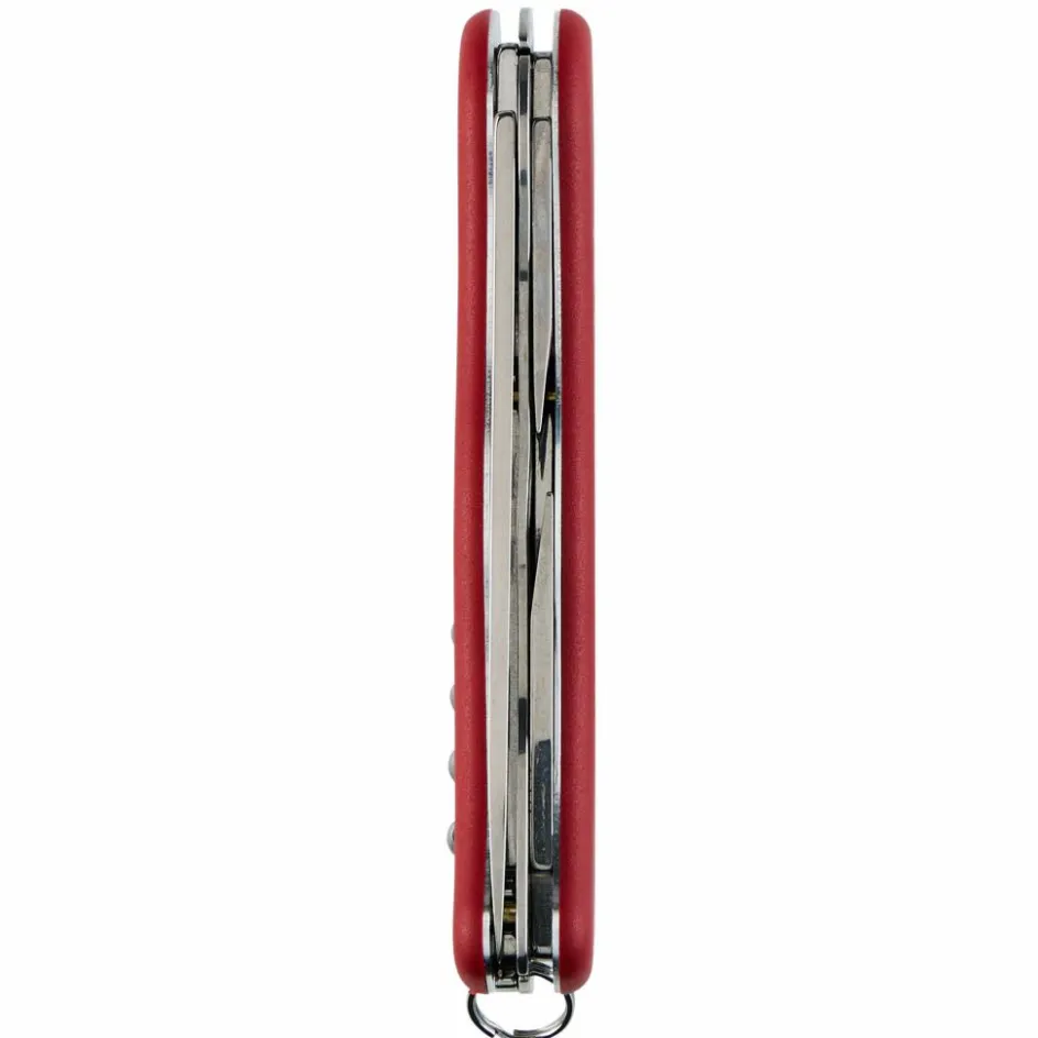 Alles dabei, um auch unterwegs genießen zu können – von Flaschenöffner bis Korkenzieher. Die 11 cm große Klinge des Schweizer Offiziersmessers arretiert nach dem Aufklappen automatisch.