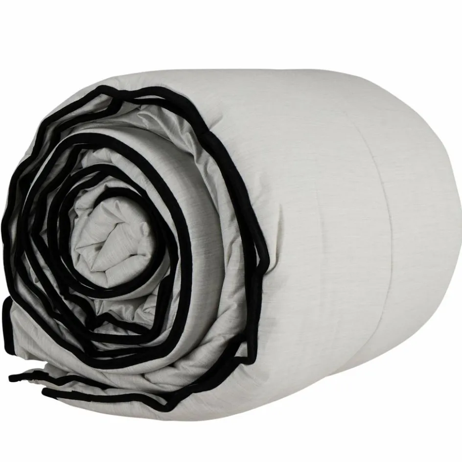 Die Bettdecke hat einen weichen Baumwollbezug und eine Isolierung aus Celliant-Fasern. Celliant ist ein patentiertes Material aus 80 % recycelten Fasern, in dessen Struktur mikroskopisch feine, thermoreaktive Mineralien eingearbeitet sind. Sie wandeln Körperwärme in Infrarotenergie um, die in den Körper zurückgestrahlt wird. Das regt die lokale Durchblutung an und unterstützt so den Schlafkomfort sowie die nächtliche Erholung. Zudem nimmt die Faser Feuchtigkeit auf und sorgt für ein trockenes, angenehmes Schlafklima. Dank des Packsacks lässt sich das Packmaß auf eine Größe von 43 × 25,5 cm reduzieren. So kannst du die Decke auch im Van oder Camper mitnehmen.