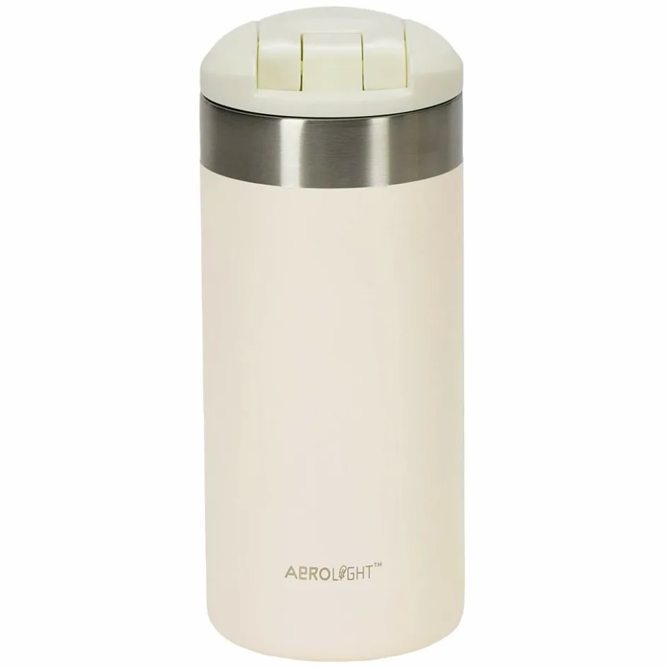 Der Aerolight Transit Mug ist durch eine veränderte Doppelwandkonstruktion leichter als herkömmliche Thermobecher. Robust ist er dennoch – dafür sorgt auch die kratzresistente Pulverbeschichtung.