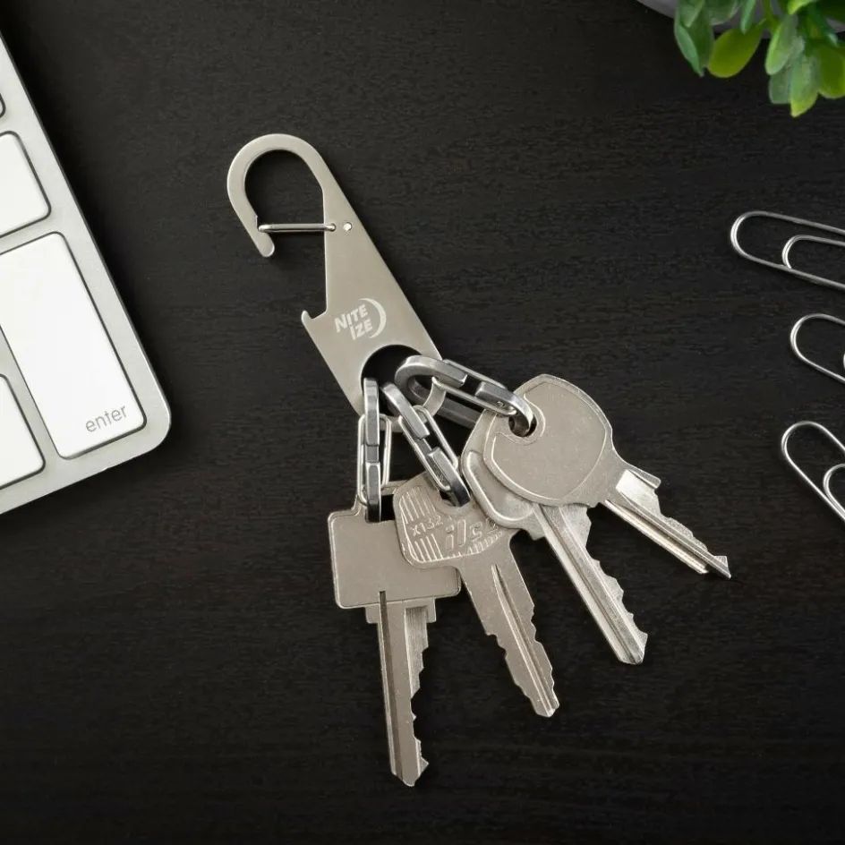 Der Z-Rack Keychain Bottle Opener besteht aus rostfreiem Edelstahl und hält mühelos dem täglichen Gebrauch stand. Das obere Ende verfügt über einen praktischen Karabiner-Clip und kann an Rucksäcken, Taschen oder an einer Gürtelschlaufe befestigt werden. Im unteren Bereich befinden sich drei MicroLink Karabiner, in die Schlüssel, Tools und Anhänger eingehängt werden können. Diese flexible Befestigung ermöglicht ein schnelles Hinzufügen und Entfernen von Schlüsseln, ohne die Gefahr, sie versehentlich zu verlieren.