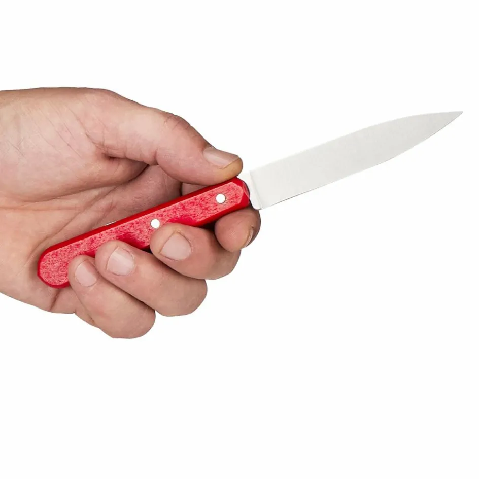 Mit einer Klingenlänge von 10 cm ist das Gemüsemesser wahrscheinlich das meistgenutzte Messer in der Küche. Es hat einen genieteten Griff aus buntem Hainbuchenholz und wird in Frankreich hergestellt.