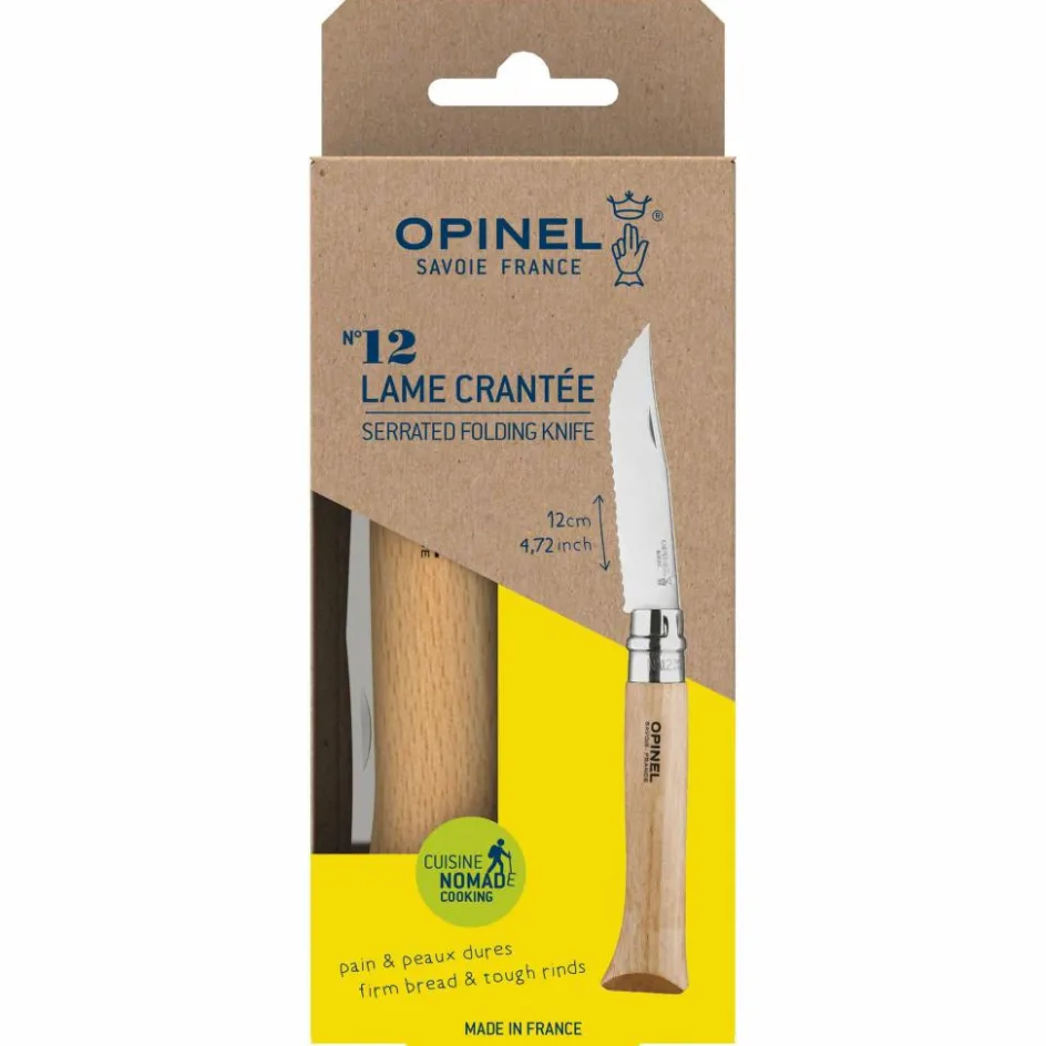 Das gezahnte Taschenmesser nimmt im Gepäck wenig Platz ein, entpuppt sich aufgeklappt jedoch zu einem vollwertigen Messer. Die Klinge besteht aus rostfreiem Edelstahl der Sorte 12C27M und zerteilt mühelos selbst große Früchte und Gemüse. Der lackierte Griff aus französischem Buchenholz ist Opinel-typisch mit der Virobloc-Sicherung ausgestattet, die ein Auf- und Zuklappen beim Transport oder der Benutzung verhindert.