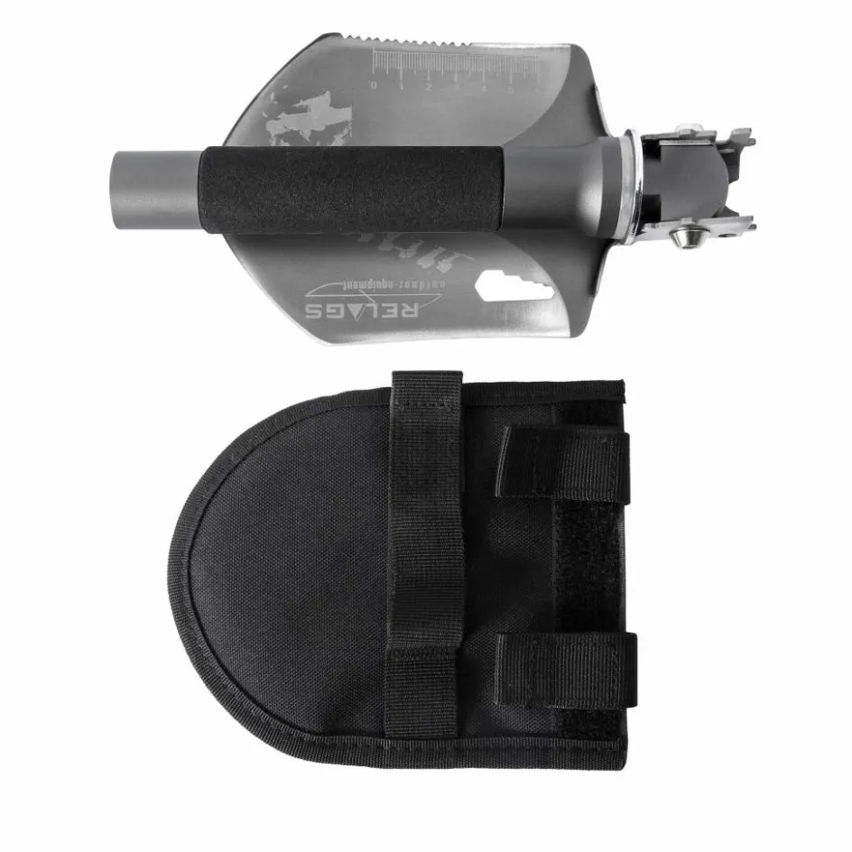 Klappschaufel aus Edelstahl, mit der du nicht nur den Spatengang verrichten kannst. Ausgestattet mit einer Hack- und Sägefunktion und praktischen Helfern, wie Schraubenschlüssel und Notfallpfeife.