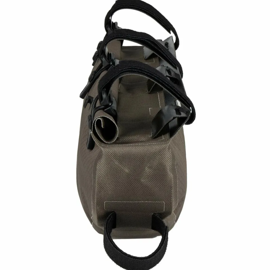 Die wasserdichte Tasche bietet dir 3 Liter Volumen. Sie hat einen schlanken Rollverschluss und individuell positionierbare Gurte mit Klettverschluss. Dank des Rollverschlusses hast du eine großzügige Öffnung zum Beladen der Rahmentasche. Die Befestigungsriemen für das Oberrohr tragen zugleich die elastischen Laschen, mit denen du den Rollverschluss schließt. Das ist durchdacht, robust und langlebig. Das Material ist Ortlieb-typisch robust und abriebfest – und auch PVC-frei. Das Frame-Pack RC Toptube ist auch für Carbon-Rahmen geeignet.