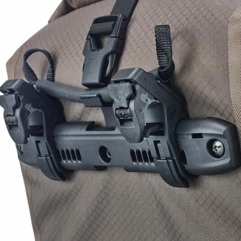 Das bewährte Ortlieb Aufhängungssystem Quick-Lock gibt es nun in der Quick-Lock 2.2 Variante; die Anpassung an verschiedene Gepäckträger ist damit noch einfacher geworden: Du benötigst für die Haken nun keine Reduzierstücke mehr, denn die Haken lassen sich auf die Rohrdurchmesser einstellen – auch hier ganz ohne Werkzeug, wie die restliche Einstellung auch. Hierzu wird die Hakenoberseite per Hebel gelöst und dank praktischer Skala auf den richtige Wert angepasst (10, 12, 14 oder 16 mm). Mit dem Schließen des Hebels arretierst du den oberen Haken-Teil wieder – und die Haken sitzen perfekt und wackelfrei. Last but not least ist die System-Belastbarkeit auf 12,5 kg gestiegen.