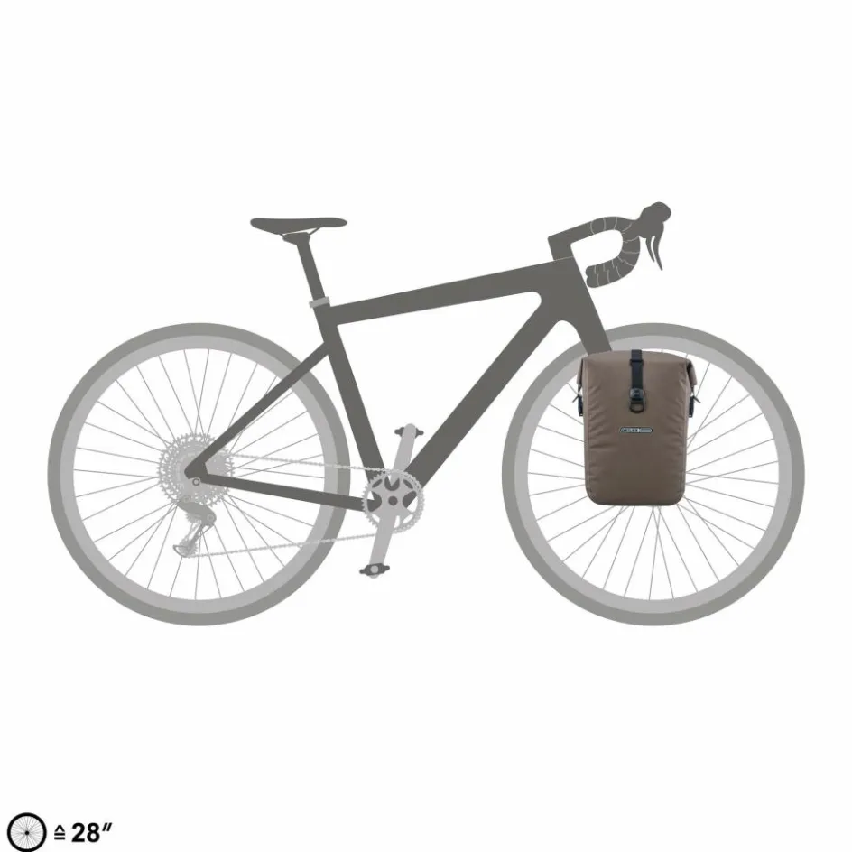 Das kompakte Gravel-Pack QL2.2 ist ideal geeignet für deinen Frontgepäckträger oder deinen Lowrider: die Tasche ist dank des verwendeten Materials sehr leicht, natürlich wasserdicht, und mit dem Quick-Lock 2.2 Aufhängungssystem ausgerüstet. Unten hat das System nicht nur einen, sondern gleich zwei Haken: Das hält sehr gut am Gepäckträger, auch wenn die Strecke mal holpriger wird. Ein weiterer Vorteil des Gewichts an der Gabel: Es kann hilfreich sein, etwas Druck aufs Vorderrad zu bekommen, wenn der Untergrund lose ist.