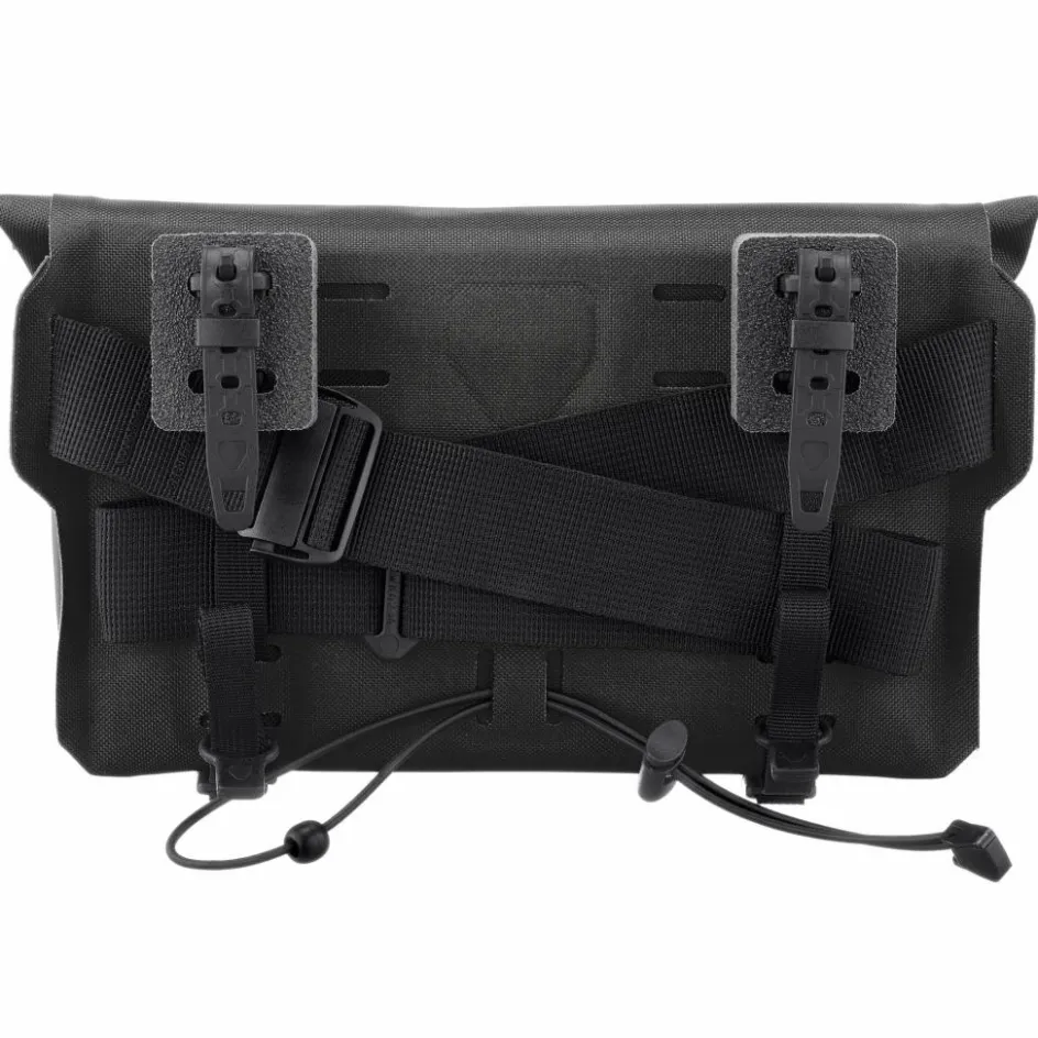 Darüber hinaus bringt die Tasche zwei Packriemen mit, die sich an den Daisy-Chains befestigen lassen. Mit diesen kannst du dann eine leichte Jacke oder andere Ausrüstung außen an der Velo-Sling fixieren – sowohl über der Schulter getragen als auch am Fahrradlenker befestigt.