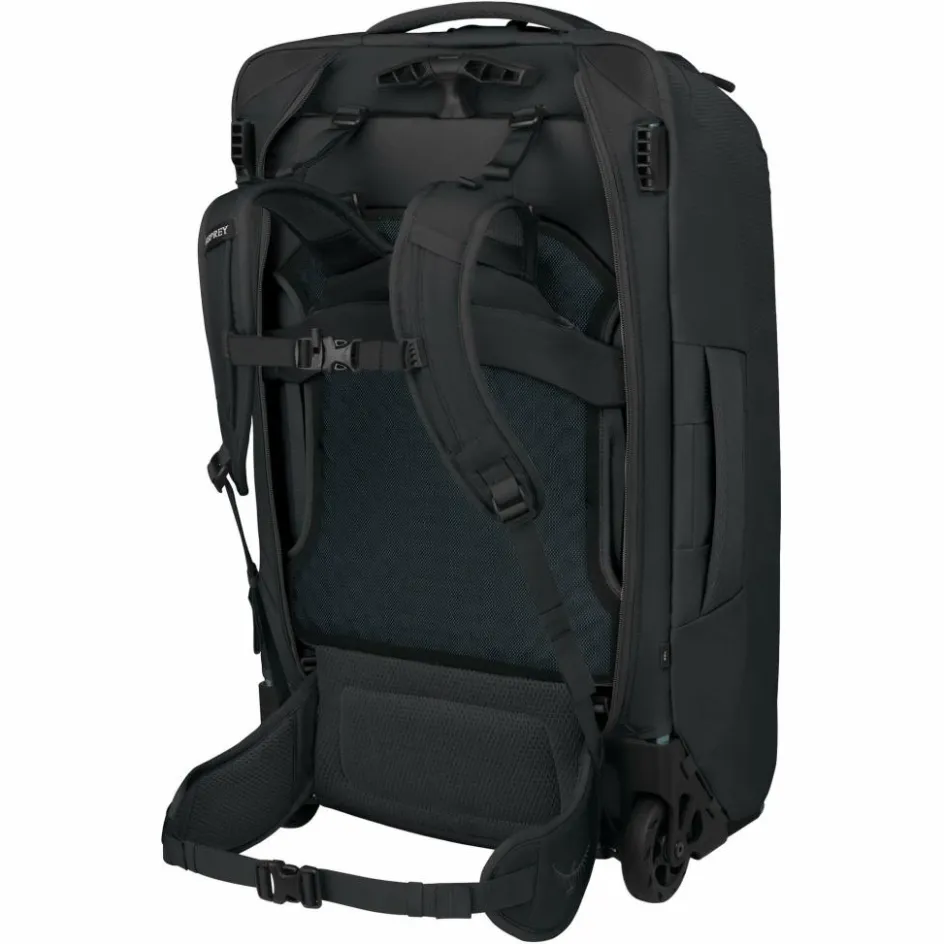 Die 90 mm großen Profilrollen verzeihen Unebenheiten und kleine Hindernisse auf dem Untergrund ohne Probleme. Stoßen die Rollen doch Mal an ihre Grenzen, öffnest du den Reißverschluss am Rücken und ein belüftetes Tragesystem mit breitem Hüftgurt kommt zum Vorschein. Dank des stabilen Rahmens des Farpoint Fairview 65 Wheels profitierst du dabei von einer ausgezeichneten Lastenübertragung und die Reisetasche trägt sich auch über längere Strecken äußerst bequem – dank des Netzrückens auch an warmen Tagen.