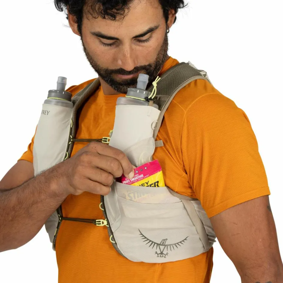 Zwei 500 ml Softflasks sorgen dafür, dass du stets mit Flüssigkeit versorgt bleibst. Für längere Durststrecken auf abgelegenen Trails lässt sich die Duro 6 zudem mit Ospreys Hydraulics LT 1.5 L Trinkblase (optional erhältlich) bestücken und das Trinkvolumen dadurch auf satte 2,5 L erweitern.