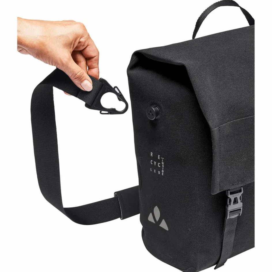 Die große Augsburg IV: Die Tasche mit QMR-Halterung lässt sich abseits vom Fahrrad als Umhängetasche tragen. Das recycelte Material ist sehr robust, wasserdicht und hat einen textilen Charakter.