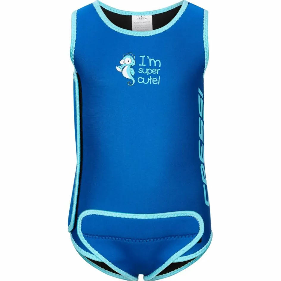 Der niedliche Neoprenanzug für Babys und Kleinkinder schützt vor Sonnenstrahlen (UV 50+) und bietet einen sehr guten Wärmerückhalt beim Planschen im Wasser.