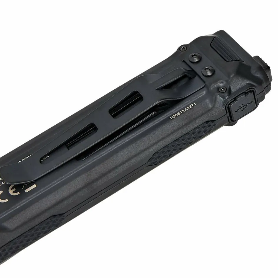 Die EDC29 verfügt über einen abnehmbaren Hosenclip, mit dem du die Lampe sicher in der Hosentasche oder am Rucksack befestigen kannst. Das hochfeste Gehäuse besteht aus Edelstahl, ist mit einer kratzresistenten PVD-Beschichtung aus Titan versehen und von einem robusten Polymerrahmen eingefasst. Dadurch hält die Lampe selbst starkem Druck problemlos stand.