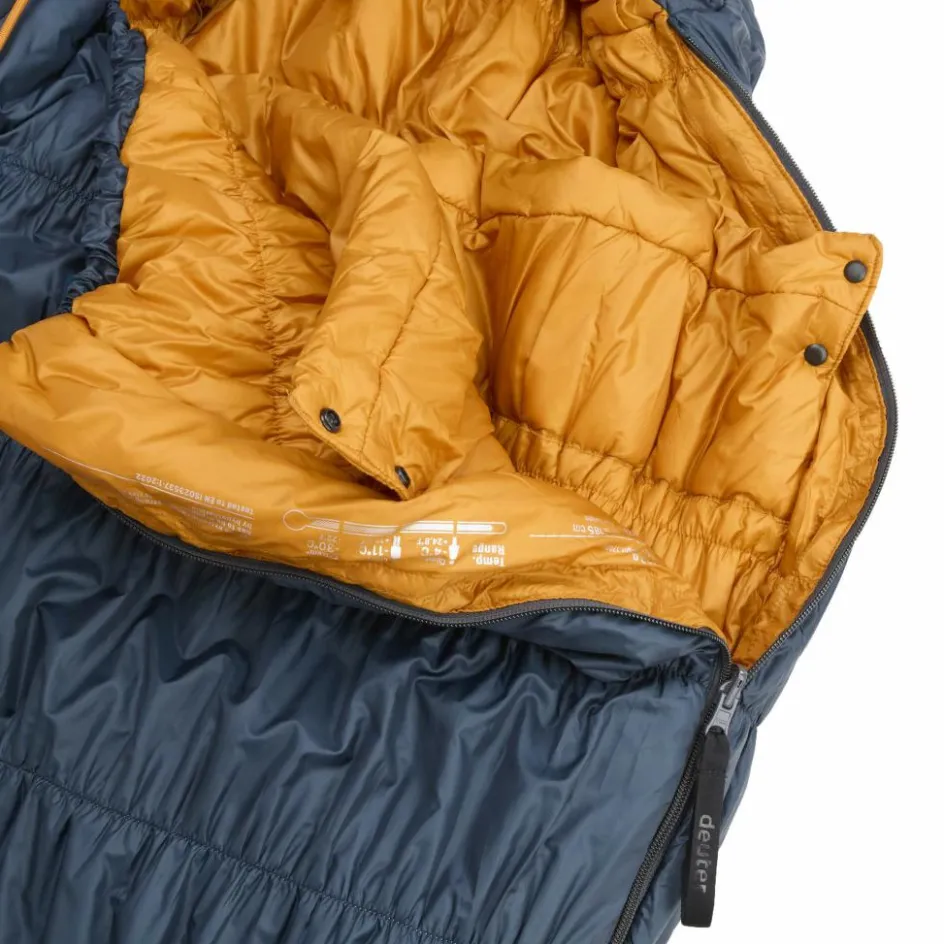 Oben und unten wird die gleiche Füllmenge verwendet. Dank dieser 360-Grad-Füllung kannst du dich nachts auch auf die Seite oder den Bauch drehen, ohne dass dir kalt wird. Die elastischen Nähte sorgen zudem für eine schnellere Erwärmung des Schlafsacks, da dein Körper weniger Luft aufheizen muss.