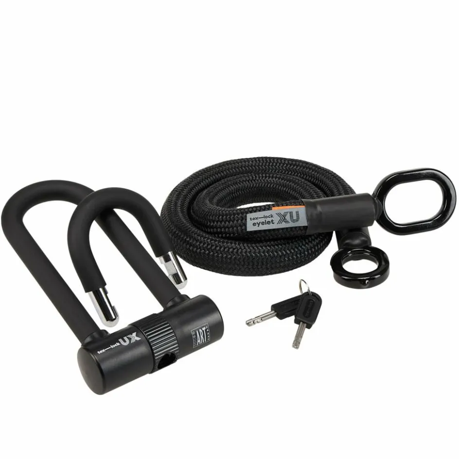 Die unabhängigen Prüfinstitute ART und Sold Secure haben das tex-lock eyelet als sicheres Fahrradschloss ausgezeichnet. Um die zertifizierte Sicherheit zu gewährleisten, gibt es die flexible Bügelschloss-Erweiterung nur im Duo mit dem U/X-lock. Der lange Bügel, mit dem man das Fahrrad an festen Gegenständen anschließen kann, ist mit Sold Secure Gold zertifiziert. Das ART2-Zertifikat gilt unabhängig von der Bügellänge auf die Schlosskombination.