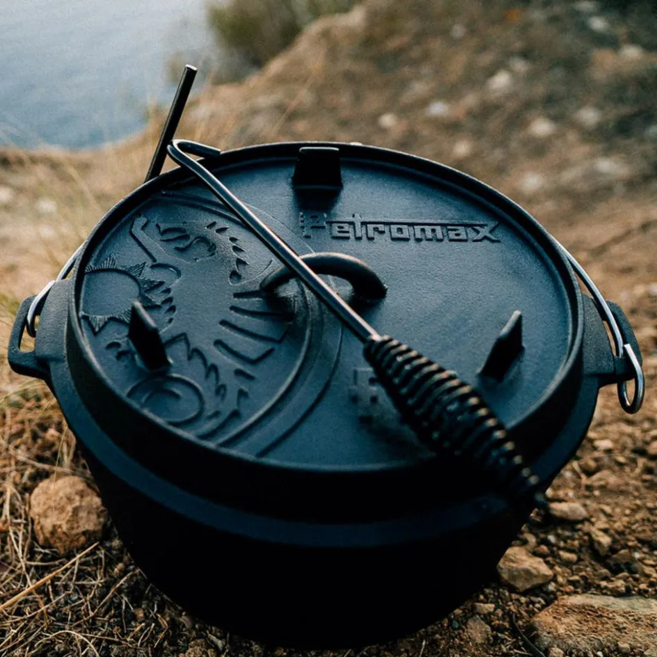 Der Deckel des Feuertopfs lässt sich optional auch als Servierplatte oder Pfanne verwenden. Dank der vorbehandelten Oberfläche (seasoned finish) kannst du den robusten Petromax Feuertopf aus Gusseisen sofort einsetzen. Der Topf sorgt für einen einzigartigen Geschmack durch konstante Rundumwärme und ermöglicht eine besonders schonende Zubereitung von Speisen wie Brot, Gemüse oder Fleisch. Der Deckel lässt sich zudem als Pfanne oder Servierteller nutzen. Durch die vorbehandelte Oberfläche ist der Feuertopf sofort einsatzbereit und unkompliziert zu pflegen.