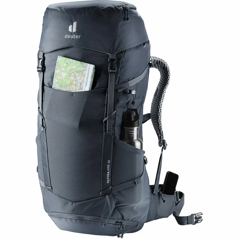 Wie auch sein Vorgänger punktet der neue Futura Pro mit einem elastischen Federstahlrahmen, der das Gewicht des Rucksacks auf deine Hüften überträgt und so für größtmöglichen Tragekomfort sorgt. Das Rückenpolster geht nahtlos in den Hüftgurt über, vermeidet dadurch Druckpunkte und schmiegt sich weich an deine Hüften an. Und dank der ergonomischen Form der ActiveFit Schultergurte macht der Rucksack auch auf bewegungsintensiven Touren – zum Beispiel beim Einsatz von Trekkingstöcken – jede deiner Bewegungen problemlos mit.
