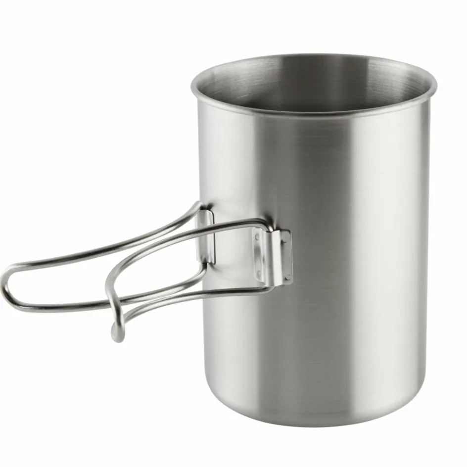 Großer Becher mit 850 ml Volumen, den du dank der robusten Ausführung auch als Topf verwenden kannst. Die klappbaren Handgriffe reduzieren das Packmaß auf ein Minimum.