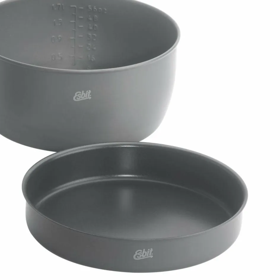 Ideal für 2 Personen. Die beiden Töpfe (2,0 und 2,5 l) und die Pfanne (18,5 cm Ø) sind zum Transport ineinander stapelbar. Das ganze Set ist aus leichtem, hartanodisiertem Aluminium hergestellt.