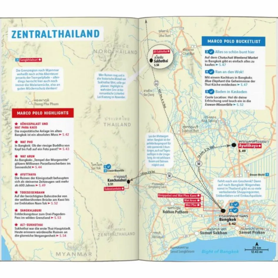 Dank des übersichtlichen Layouts und der Faltkarte zum Herausnehmen kannst du dir deinen individuellen Traumurlaub zusammenstellen: Nach einem langen Tag mit Schwimmen und Schnorcheln tauchst du im Dunst von Räucherstäbchen im Wat Chiang Man Tempel in die Welt der Buddhisten ein oder erforscht in mystischer Atmosphäre Alt-Sukhothai, den Ort, wo die Geschichte Thailands begann – dein Marco Polo Reiseführer Thailand sorgt für eine maximal einfache Reiseplanung!