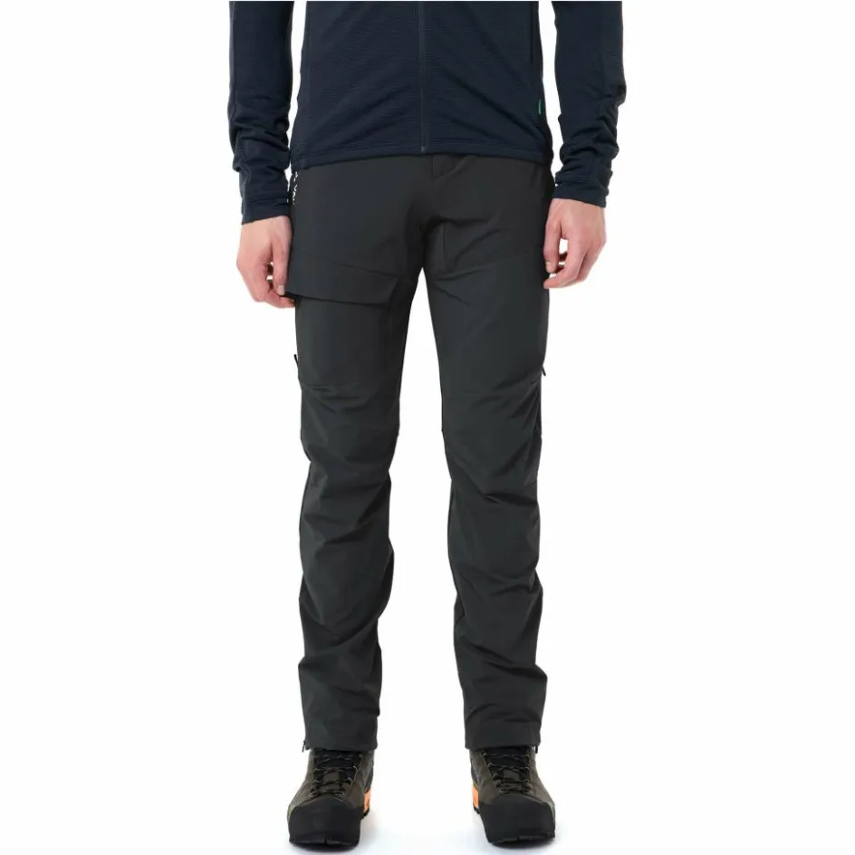 Der hybride Materialmix mit besonders robusten Einsätzen am Gesäß und an den Beinabschlüssen schützt zuverlässig vor Abrieb durch schroffe Felsen an besonders beanspruchten Stellen, ohne die Bewegungsfreiheit einzuschränken. Am Fuß sorgt der Beinabschluss mit Reißverschluss für einen variablen aber engen Fit, der sich je nach Aktivität und Schuhmodell anpassen und mit einem (verstaubaren) Schuhhaken fixieren lässt.