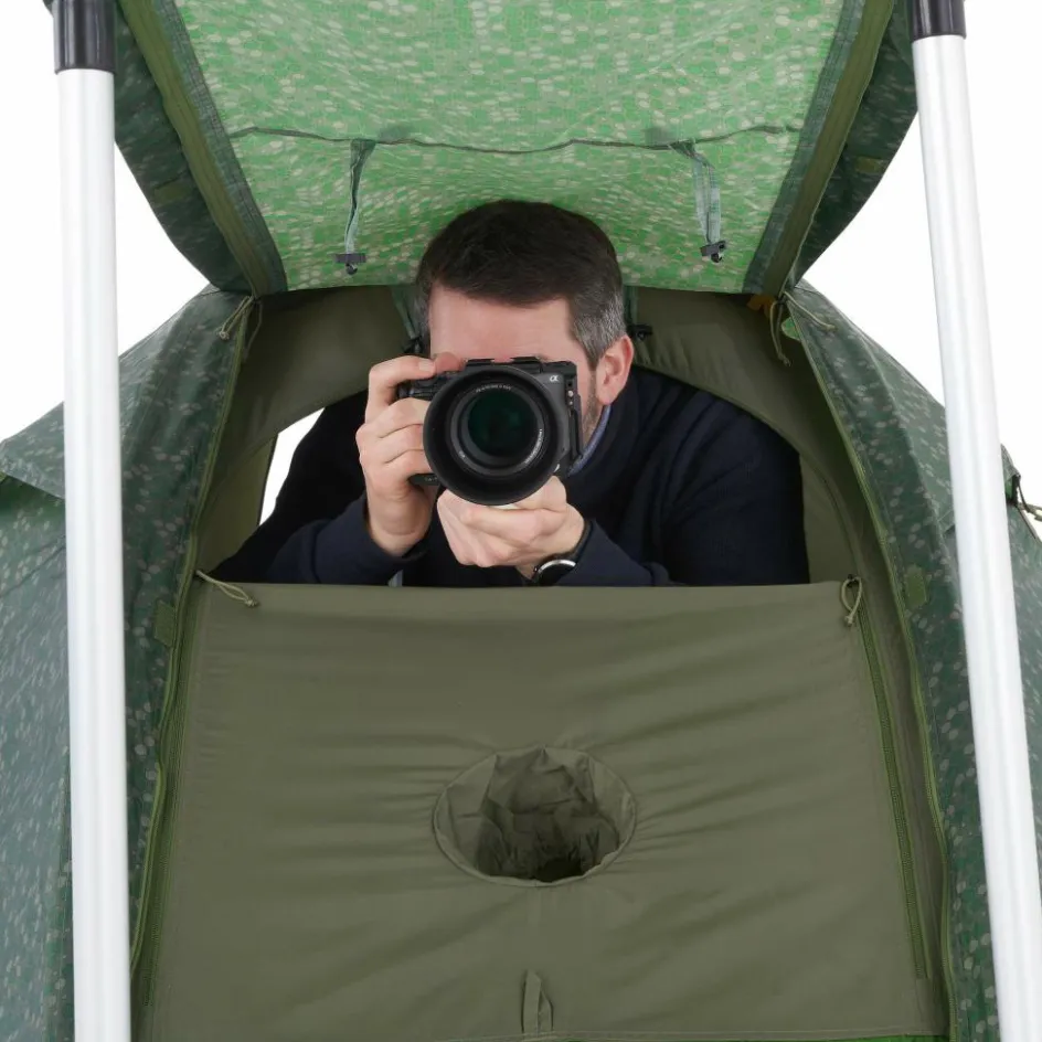 Das Pathfinder Stealth richtet sich an alle Naturbeobachter und Fotografen. Neben der unauffälligen Zeltfarbe besitzt das Modell auch einen zusätzlichen Fronteingang mit Linsenöffnung.