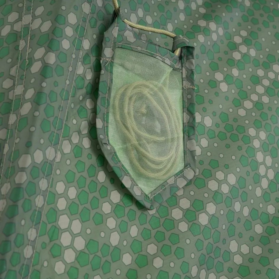 Die Frontseite wurde so verändert, dass ein zusätzlicher Eingang entstanden ist. Er kann teilweise oder vollständig aufgerollt werden und lässt sich bei Bedarf als Vordach abspannen. Hinter dem Eingang schützt dich ein Moskitonetz in mückenreichen Gegenden vor unliebsamen Zeltbewohnern. Trotzdem kannst du deine Kamera einsatzbereit in der Hand halten. Eine in der Größe justierbare Rundöffnung erlaubt dir, die Kameralinse aus dem Zelt nach draußen zu führen. Benötigst du eine größere Öffnung oder möchtest mit dem Fernglas die Landschaft erkunden, kannst du das Moskitonetz dank der Doppelreißverschlüsse auch von oben her öffnen.