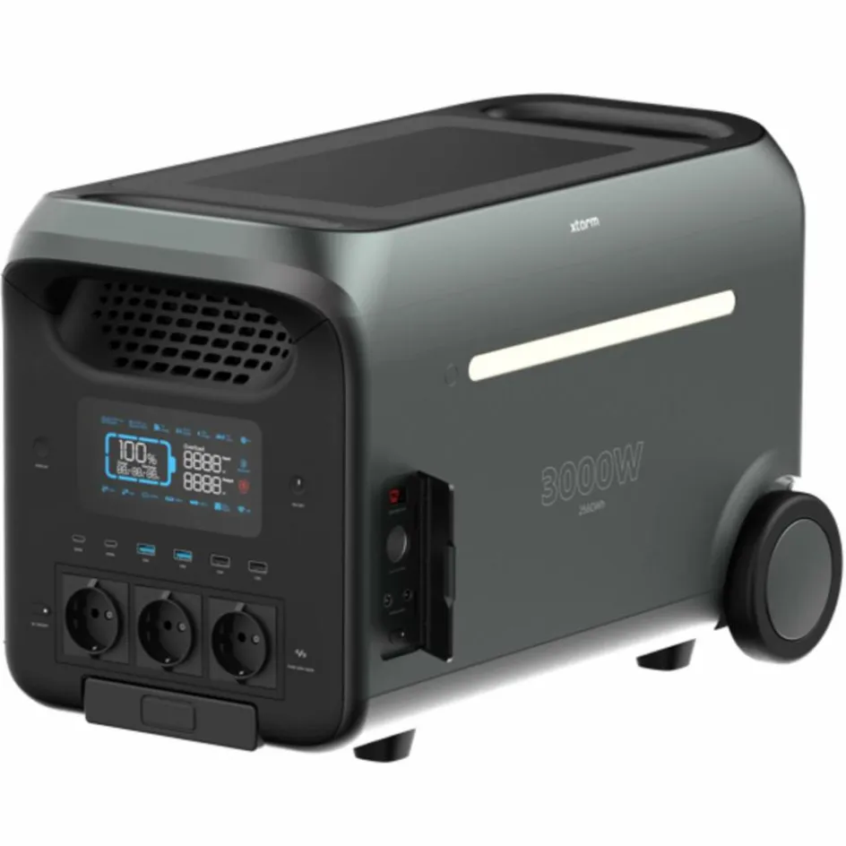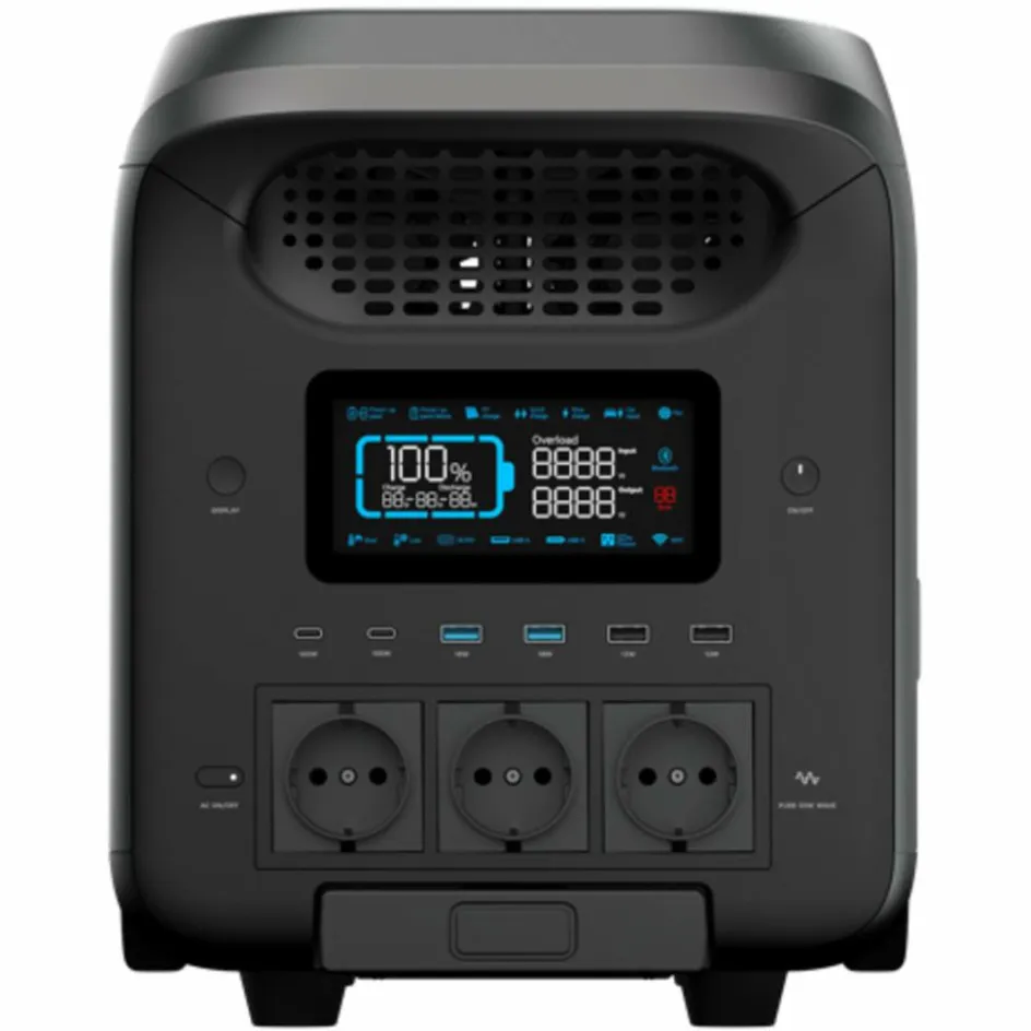 Mit diesem Kraftpaket hast du jederzeit die Steckdose und genügend Energie bei dir. Mit 3000 W ist das Laden und der Betrieb von großen Kühlschränken, Mikrowellen, Satubsauger oder ganzen Workstations kein Problem. Auch kurzfristige Spitzen bis 5.000 W sind möglich. Mit insgesamt 13 Ausgängen stehen dir viele Anschlussmöglichkeiten wie herkömmliche Netzstecker, Autoladeanschluss, USB-A und USB-C zum Aufladen zur Verfügung. Die Steuerung und Überwachung der Powerstation kannst du über das Display am Gerät oder über die kostenlose App auf dem Smartphone vornehmen.