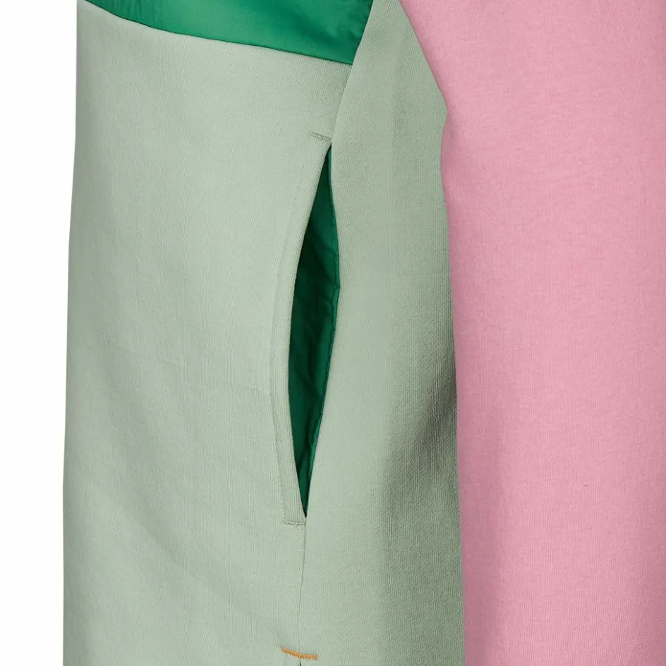 Ein Mix aus recyceltem Polyester und Baumwolle im Hauptmaterial sorgt für eine tolle Kombination aus weichem Tragegefühl sowie nötiger Wärme. Dazu trägt auch die aufgebürstete Innenseite bei, die sowohl Wärme speichert als auch angenehm auf der Haut liegt. Zudem punktet der Pullover durch den recycelten Kunstfaser-Anteil mit schnellem Feuchtigkeitstransport, kurzer Trocknungszeit sowie Umweltbewusstsein.