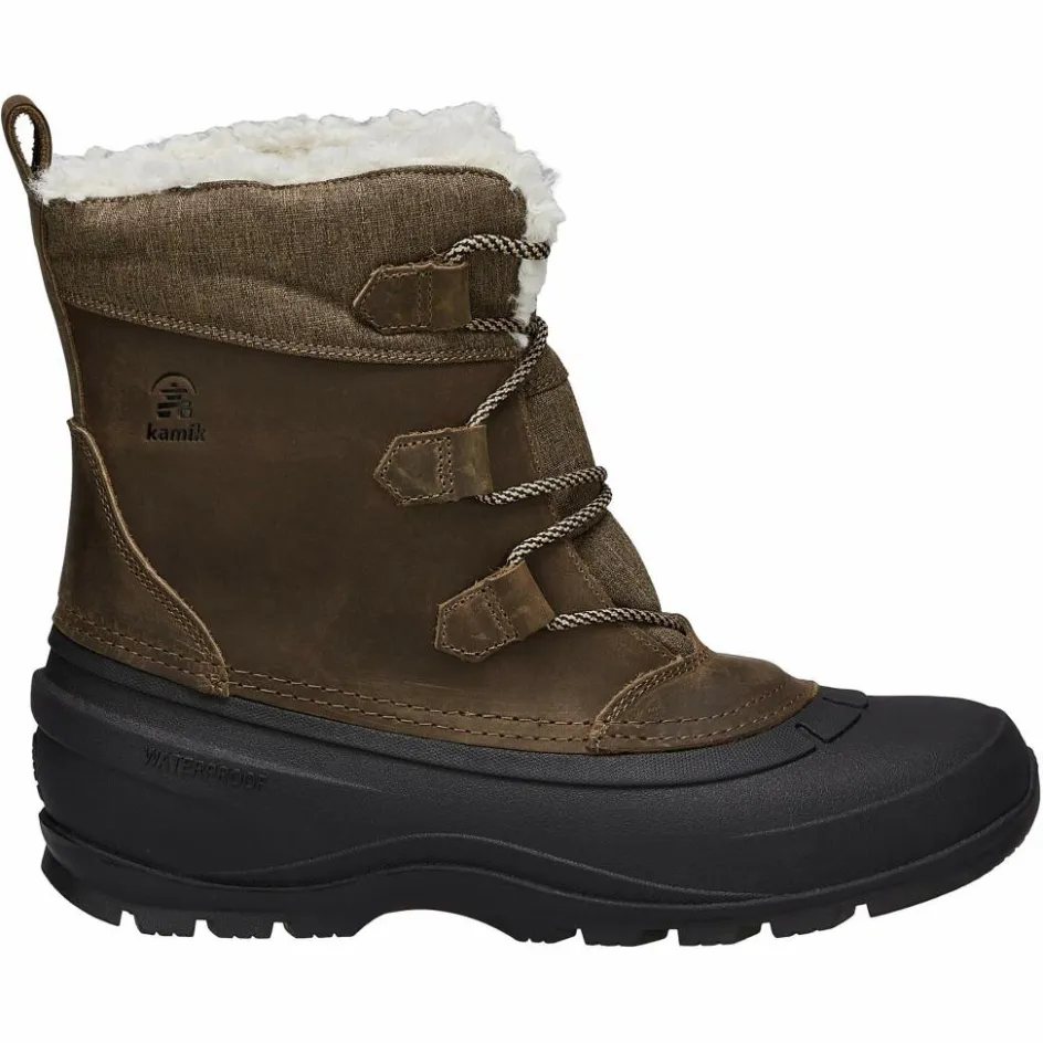 Der hochwertige Canadian Boot aus dem Hause Kamik leistet, bei bis zu -40°C, Schwerstarbeit. Kann er aber auch! Der Oberaufbau des Stiefels besteht zu großen Teilen aus hochwertigem, wasserdichtem und besonders nachhaltig produziertem Leder. Perfekt für ausgedehnte Abenteuer in Eis und Schnee. Im unteren Bereich wird es durch eine weit hochgezogene Gummigalosche ergänzt, die zusätzlichen Schutz vor Nässe bietet. Bei der Schuhzunge kommt synthetisches Nylon-Gewebe zum Einsatz. Dadurch ist der Stiefel insgesamt etwas leichter, widersteht aber trotzdem den härtesten Winterbedingungen.