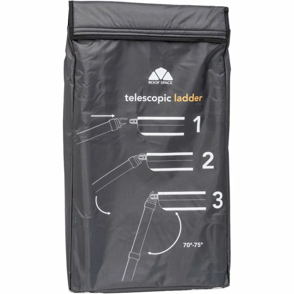 Die passende Teleskopleiter für dein Roof Space Dachzelt, hier in der Variante mit bis zu 2,6 m Länge.