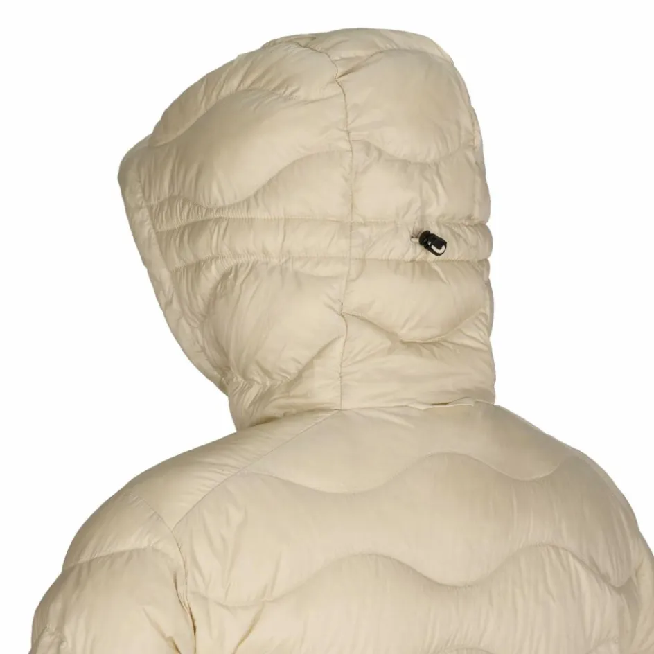 Mit einer isolierenden RDS-zertifizierte Daunenfüllung versehen (700 cuin) hält dich der Parka bis hin zu den Oberschenkeln angenehm warm, wenn sich die Temperaturen spürbar abkühlen. Zudem fällt der Parka kaum ins Gewicht und überzeugt mit seinem guten Wärme-Gewichts-Verhältnis (380 g). Durch das abriebfeste sowie wind- und wasserabweisende plus recycelte Außenmaterial ist die Füllung zudem optimal verpackt. So werden dir Wind und leichte Nässe vom Leibe gehalten. Das Steppmuster hält die Daunen an Ort und Stelle und verleiht der Jacke eine einzigartige Optik.
