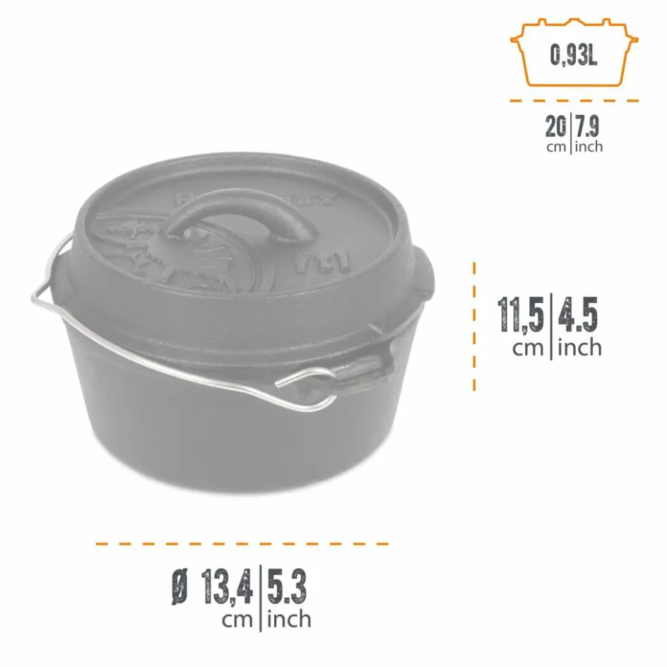 Kleiner Dutch Oven mit planem Boden mit dem du direkt über dem Feuer oder im Ofen leckere Gerichte zaubern kannst. Er eignet sich zum Garen ebenso wie für leckere Eintöpfe, Suppen, Fleisch und Gemüse.